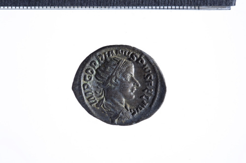 Busto radiato di Gordiano III a d. con corazza e paludamentum, di tre quarti di spalle; contorno perlinato.