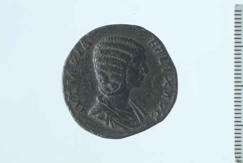 Busto drappeggiato di Giulia Domna a d.; contorno perlinato.