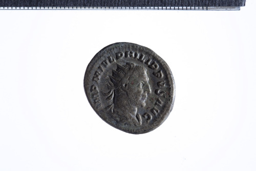 Busto radiato di Filippo I a d., con corazza (?) e paludamentum, di tre quarti di spalle; contorno perlinato.