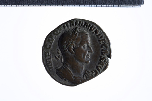 Busto laureato e corazzato di Traiano Decio a d., di tre quarti in avanti; contorno perlinato.