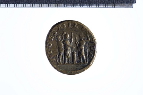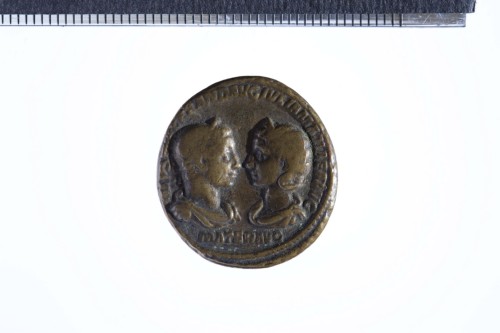 Busti affrontati di Alessandro Severo e Julia Mamaea; busto di Alessandro Severo laureato, corazzato e paludato a d.; busto di Julia Mamaea diademato e drappeggiato a s.; contorno perlinato.
