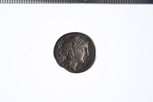 Testa galeata di Roma a d.; dietro, un oggetto quadrangolare; c.p.