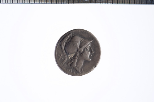 Testa di Roma a d. con elmo corinzio, dietro simbolo di valore X