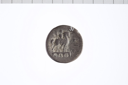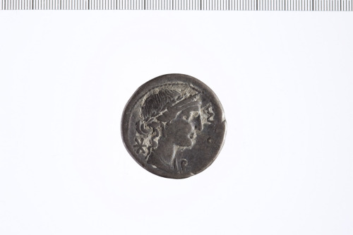 Busto femminile laureato a d. con diadema. Contorno perlinato.