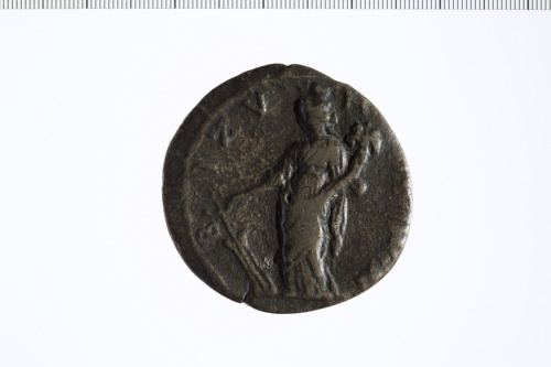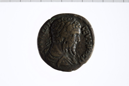 Testa laureata di Settimio Severo a d. con paludamentum.