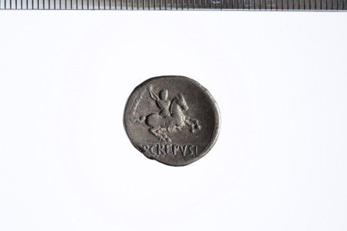 Testa laureata di Apollo? a d. con dietro uno scettro; davanti un simbolo non meglio identificabile; c.p.
