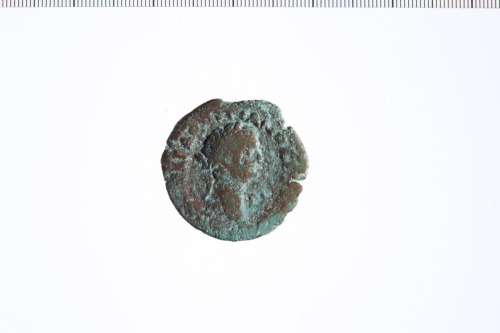 Testa laureata di Domiziano a d.