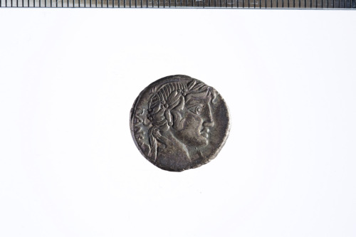 Testa laureata di Apollo a d.; sotto il mento un simbolo o lettera di controllo non meglio identificabile; c.p.