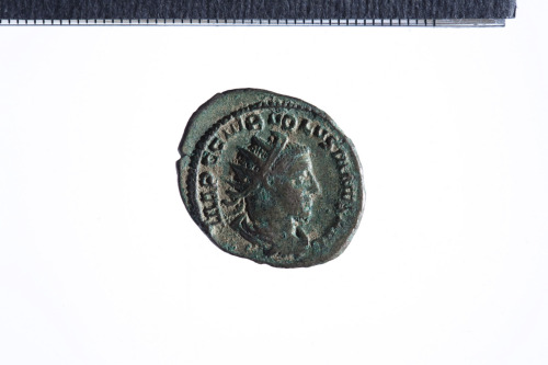 Busto radiato e drappeggiato di Volusiano a d.; contorno perlinato.