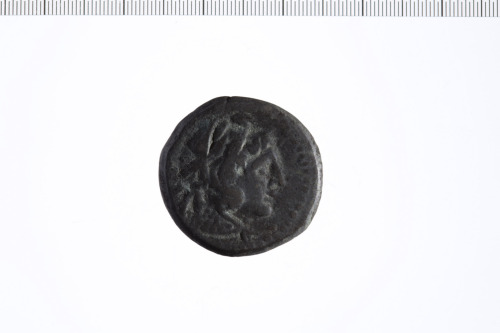 Testa di Alessandro Magno a d. con corna di Zeus Ammone e pelle di elefante ed egida. Contorno lineare.
