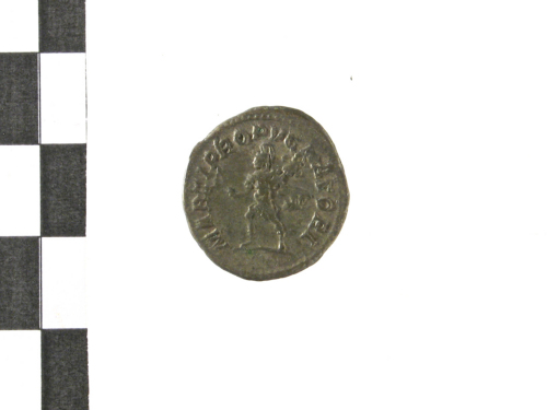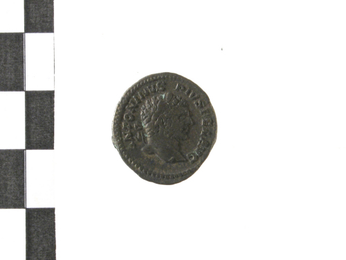 Testa laureata di Antonino III a d.; contorno perlinato.
