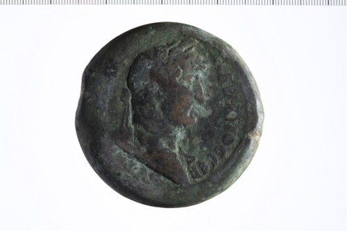 Busto laureato di Adriano a d., paludato, di profilo.