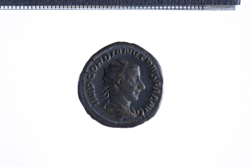 Busto radiato di Gordiano III a d. con corazza e paludamentum, di tre quarti di spalle; contorno perlinato.