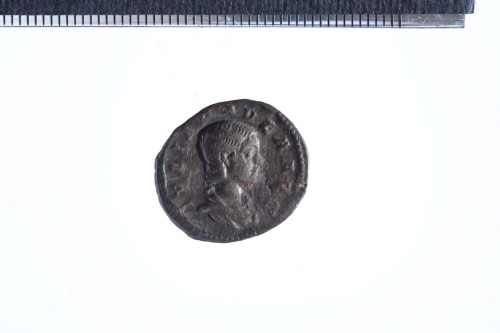 Busto drappeggiato di Giulia Paola a d., di tre quarti in avanti; contorno perlinato.