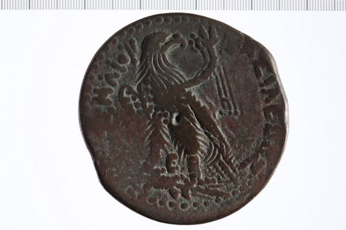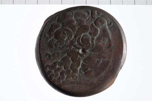 Testa di Zeus Ammone a d. con diadema e ornamenti floreali. Contorno lineare.