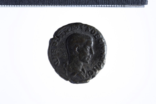Busto a testa nuda di Herennio Etrusco a d., con corazza (?) e paludamentum, di tre quarti di spalle; contorno perlinato (?).