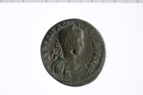 Busto laureato a d. di Gordiano Pio, corazzato, paludato, di tre quarti in avanti; contorno perlinato.