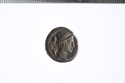 Busto drappeggiato di Leuconoe a d., con i capelli trattenuti da triplice fascia e ingioiellati; a s. un delfino. Bordo perlinato.