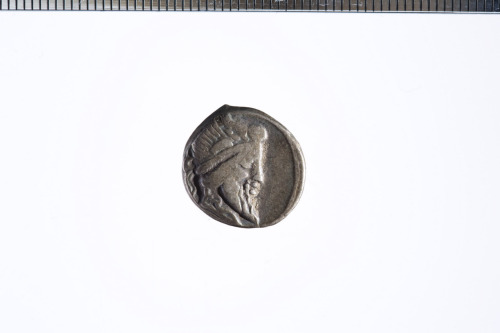 Testa barbata e con diadema alato a d.; c.l.