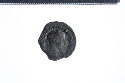 Busto laureato di Gordiano III a d. con corazza (?) e paludamentum, di tre quarti di spalle; contorno perlinato.
