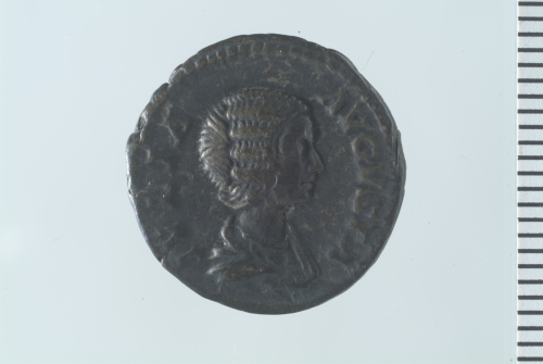 Busto drappeggiato di Giulia Domna a d.; contorno perlinato.