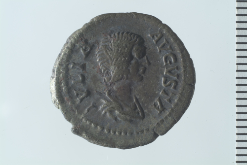 Busto drappeggiato di Giulia Domna a d.; contorno perlinato.