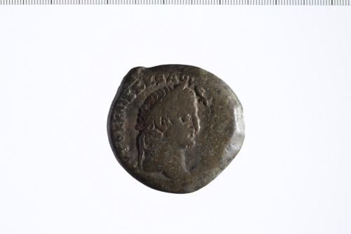 Testa laureata di Vespasiano a d.