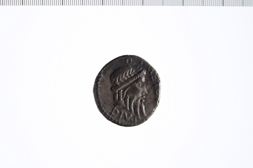Testa laureata di Giove a d. Bordo perlinato.