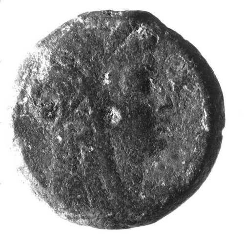 Testa femminile ( Iside ) a d. con lunghi boccoli e corona di spighe