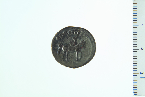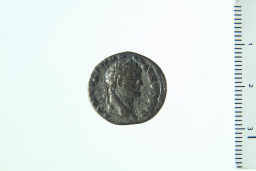 Testa laureata di Domiziano a d.; contorno perlinato.