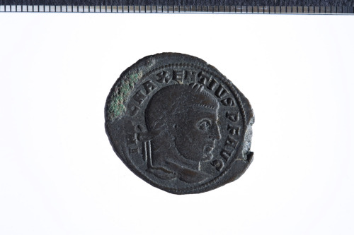 Busto laureato di Massenzio a d.; contorno perlinato.