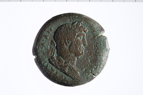Busto laureato di Adriano a d., paludato, di tre quarti, in avanti.