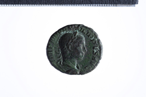 Busto laureato di Filippo II a d. con corazza e paludamentum, di tre quarti di spalle; contorno perlinato (?).