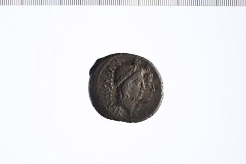 Teste dei Dioscuri a d. con i pilei sormontati da due stelle e decorati con una corona d'alloro. Bordo perlinato.