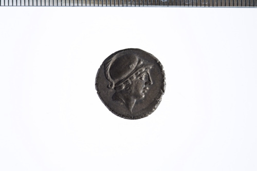 Testa di Marte a d., con elmo crestato. Bordo perlinato.