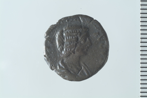 Busto drappeggiato di Giulia Domna a d.; contorno perlinato.