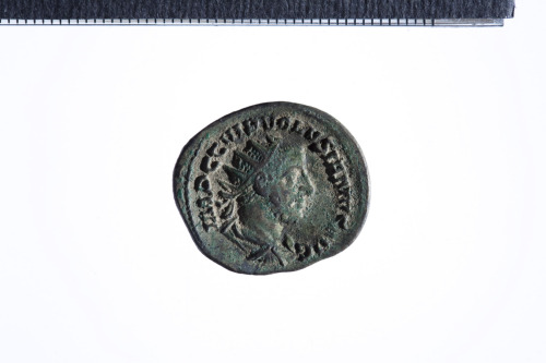 Busto radiato e drappeggiato di Volusiano a d.; contorno perlinato.