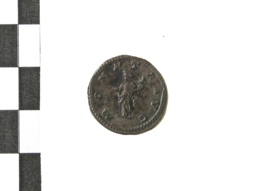 Testa laureata di Antonino III a d.; contorno perlinato.