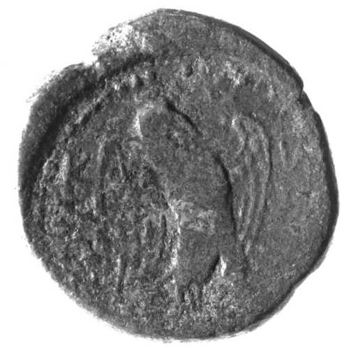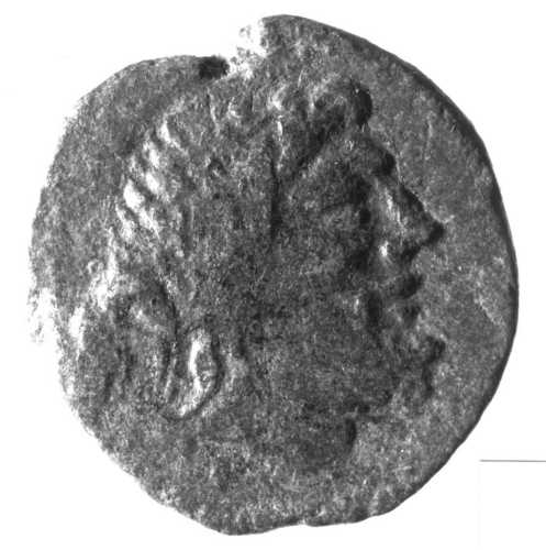 Testa laureata di Zeus; di fronte, fulmine
