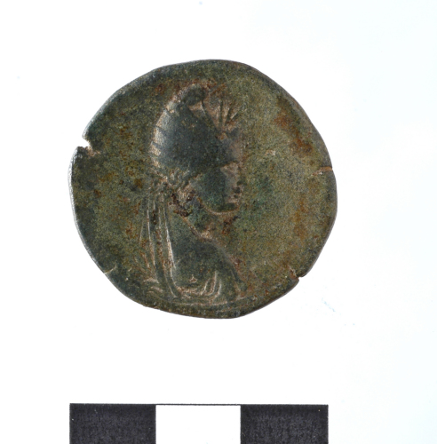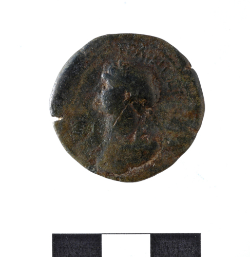 [---]TRAI(AI)OC CE[B---]busto laureato di Traiano a s.
