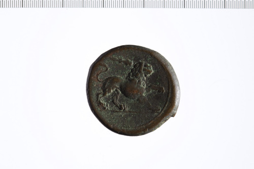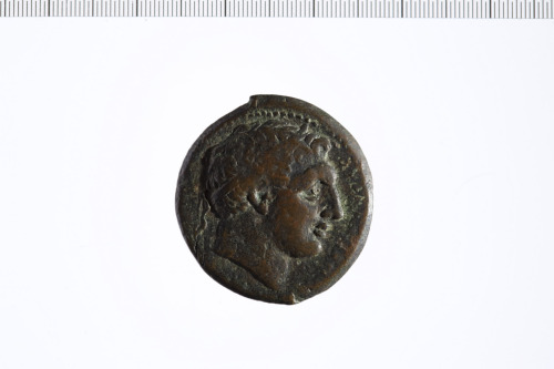 Testa maschile giovane a s., a s. arco, in esergo torcia.