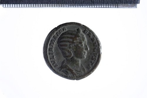 Busto diademato e drappeggiato di Julia Mamaea a d.; contorno perlinato.