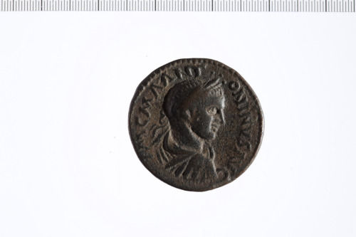 Busto di Elagabalo a d. laureato e con paludamentum e corazza.