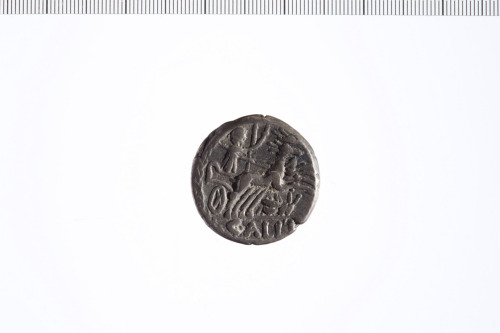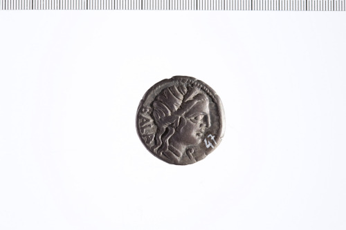 Testa femminile a d. con diadema. Contromarca a d. Contorno perlinato.