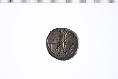 Teste dei Dioscuri a d. con i pilei sormontati da due stelle e decorati con due nastri. Bordo perlinato.