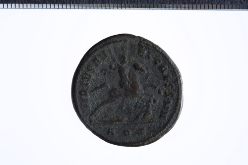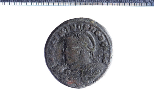 Busto laureato, elmato e corazzato di Severo a s. con lancia e scudo; contorno perlinato.