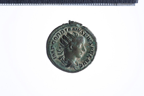 Busto radiato di Gordiano III a d. con corazza e paludamentum, di tre quarti di spalle; contorno perlinato.