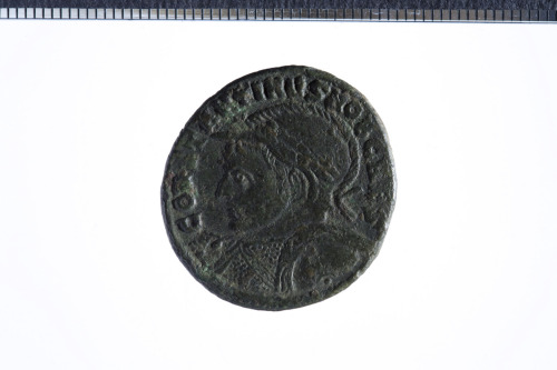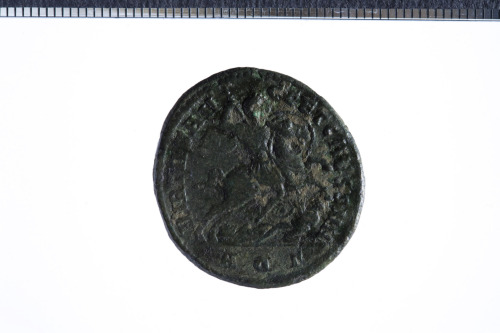 Busto laureato, elmato e corazzato con lancia e scudo di Costantino a s.; contorno perlinato.