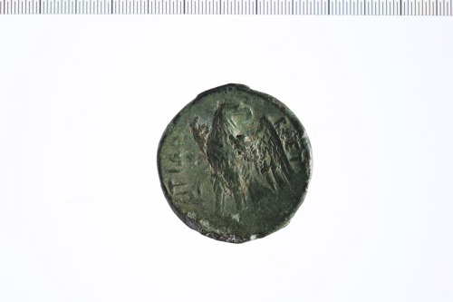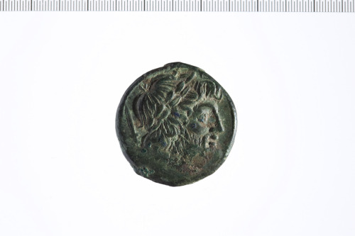 Testa laureata di Zeus a d.; a s. fulmine.