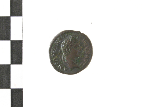 Testa laureata di Antonino III a d.; contorno perlinato.